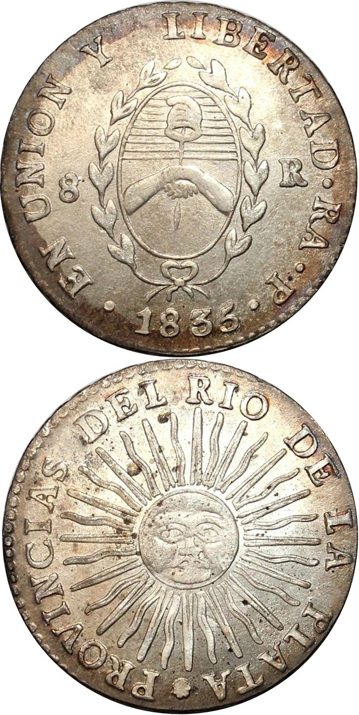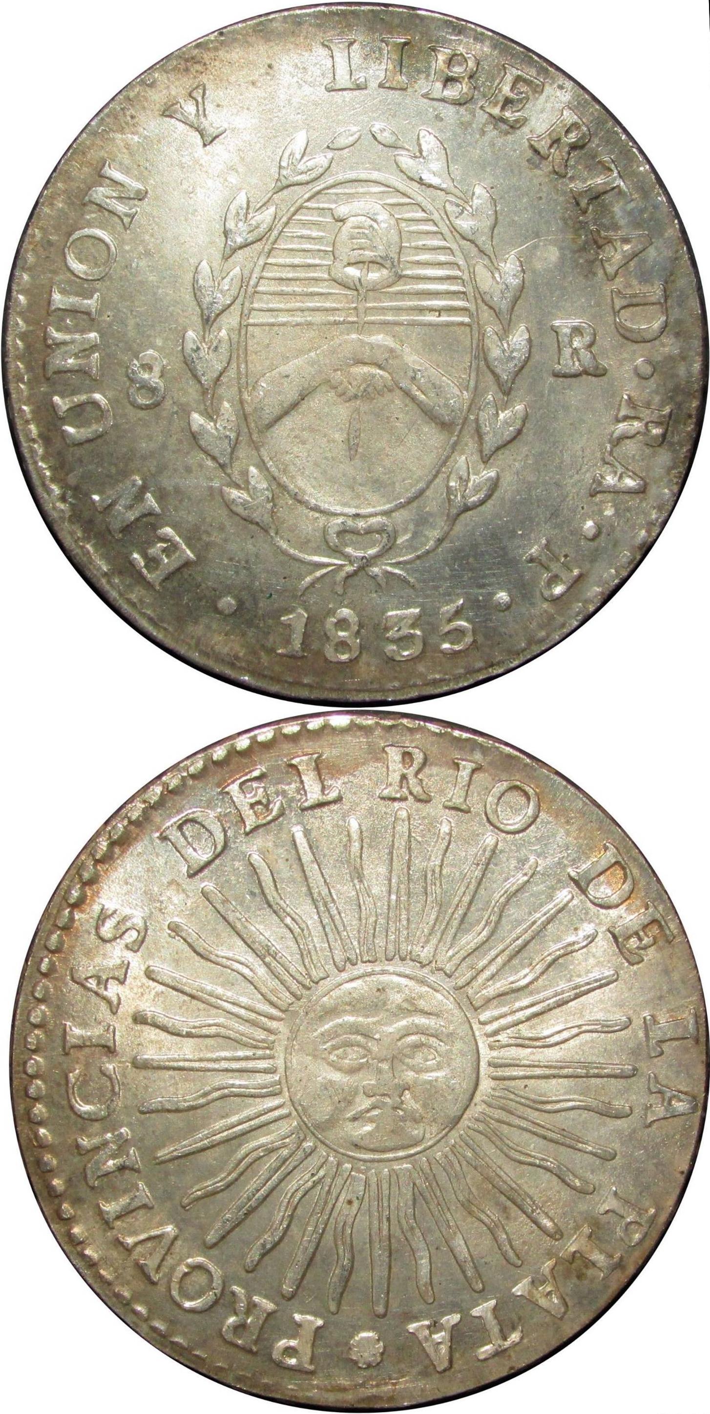 Los anversos y reversos de esta pieza son copia fiel de la falsificación de la moneda de 1836 con la diferencia del cambio del último dígito del año 1836 por el 1835.