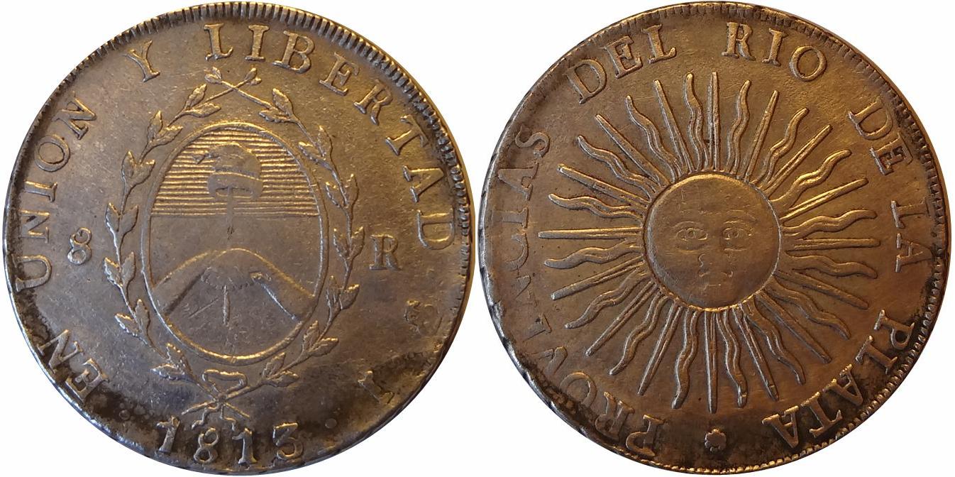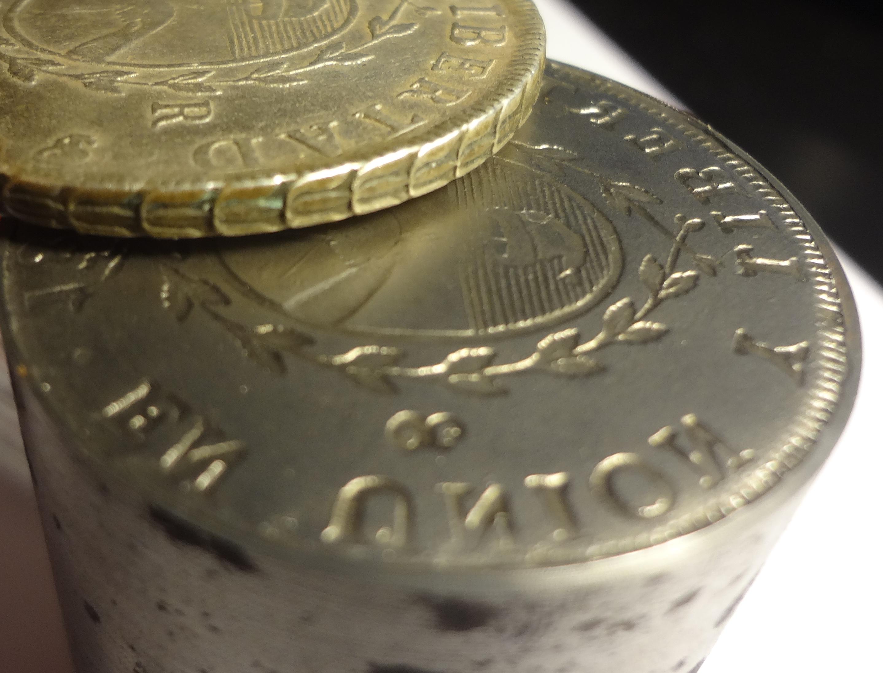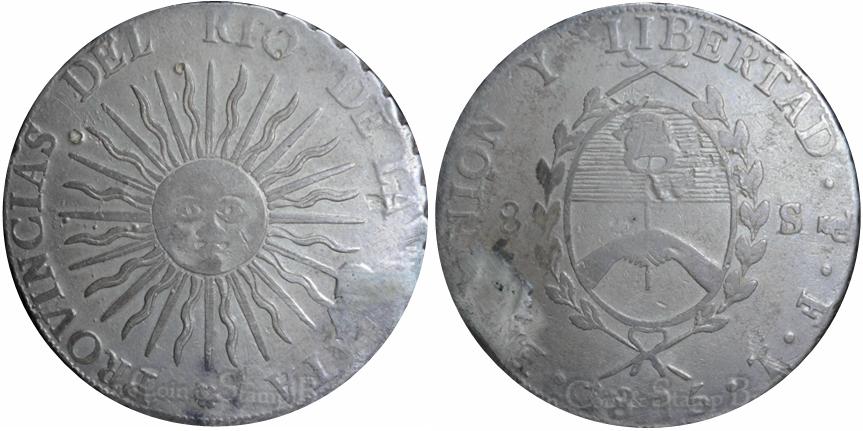 Cuño utilizado para falsificar una moneda argentina de 1813 de 8R.