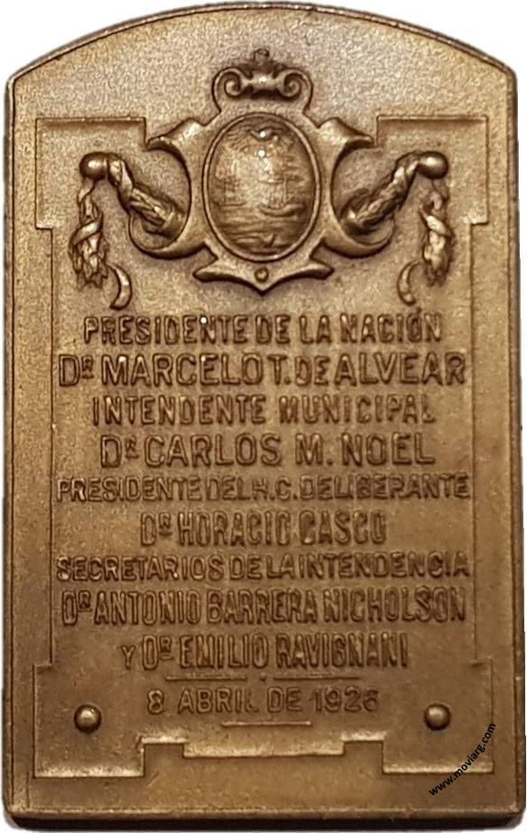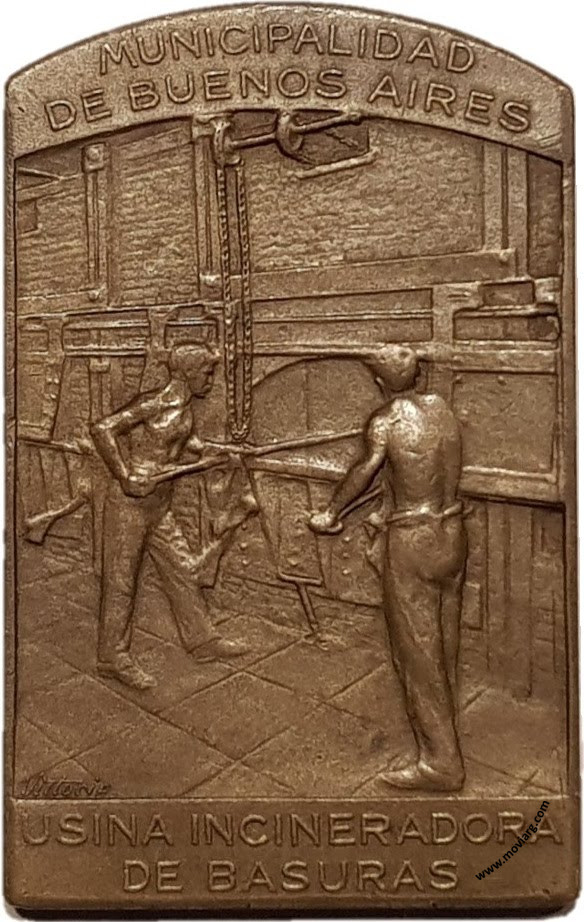 Anverso: MUNICIPALIDAD / DE BUENOS AIRES / USINA INCINERADORA / DE BASURAS. Firma: VITTORIO Reverso: PRESIDENCIA DE LA NACIÓN / DR. MARCELO T. DE ALVEAR / INTENDENTE MUNICIPAL / DR. CARLOS M. NOEL / PRESIDENTE DEL H. C. DELIBERANTE / DR. HORACIO CASCO / SECRETARIOS DE LA INTENDENCIA / DR. ANTONIO BARRERA NICHOLSON / Y DR. EMILIO RAVIGNANI / 8 ABRIL DE 1926 Referencia: | |