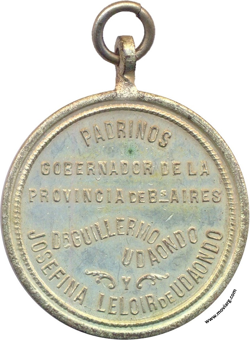 Anverso: COLOCACION DE LA PIEDRA FUNDAMENTAL DEL EDIFICIO MUNICIPAL / DEL PILAR / 12 OCTUBRE 1896. Firma: ORZALI B. Y C. Reverso: PADRINOS / GOBERNADOR DE LA / PROVINCIA DE BS. AIRES / DR. GUILLERMO / UDAONDO / JOSEFINA LELOIR DE UDAONDO Referencia: | |