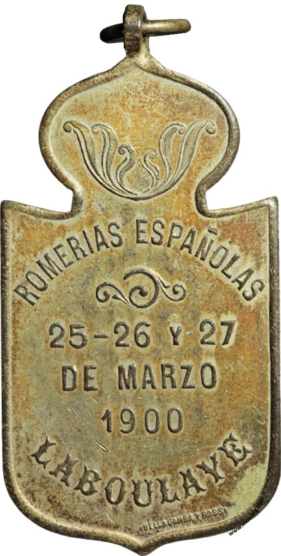 Anverso: Reverso: ROMERIAS ESPAÑOLAS / 25 - 26 Y 27 / DE MARZO / 1900 / LABOULAYE. Firma: BELLAGAMBA Y ROSSI Referencia: | |
