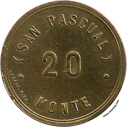 RAH Anverso: ( SAN PASCUAL ) / MONTE / 20. Firma: ORZALI B. Y C.Reverso: Referencia: | |