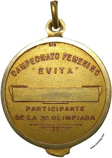 Anverso: FUNDACION EVA PERON Reverso: CAMPEONATO FEMENINO / "EVITA" / PARTICIPANTE / DE LA 2A. OLIMPIADA. Exergo: [ 900 ] Referencia: | |