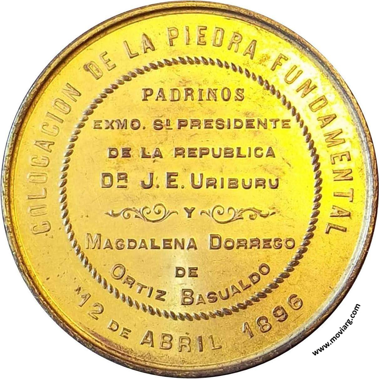 Anverso: COLEGIO DE LAS ESCUELAS PIAS / BUENOS AIRES. Firma: ORZALI. B. C. Reverso: COLOCACION DE LA PIEDRA FUNDAMENTAL / PADRINOS / EXMO. SR. PRESIDENTE / DE LA REPUBLICA / DR. J. E. URIBURU / Y / MAGDALENA DORREGO / DE / ORTIZ BASUALDO / 12 DE ABRIL 1896 Referencia: | |
