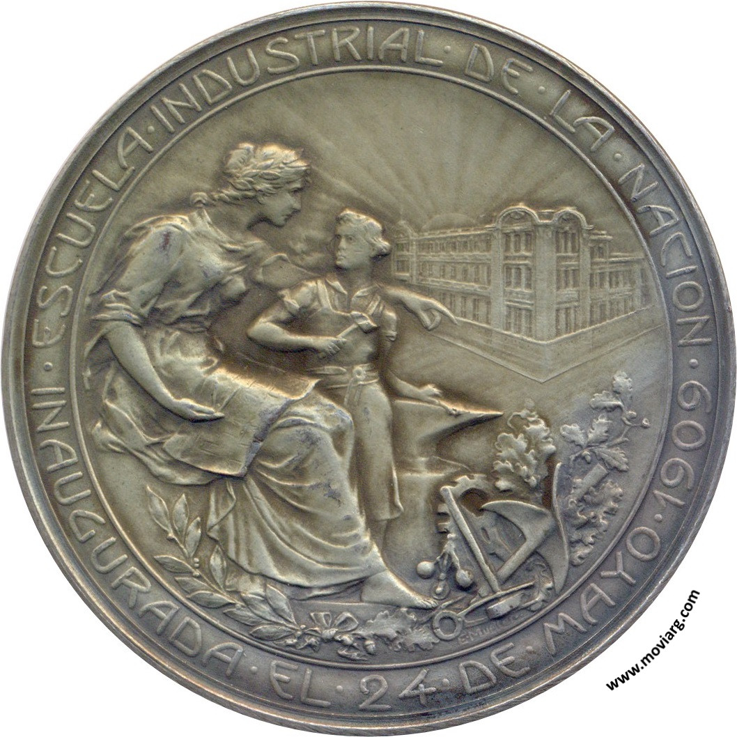 Anverso: ESCUELA INDUSTRIAL DE LA NACION / INAUGURADA EL 24 DE MAYO 1909. Firma: E. MUELLER Reverso: PRESIDENTE DE LA REPUBLICA / DR. JOSE FIGUEROA ALCORTA / MINISTRO DE INSTRUCCION PÚBLICA / DR. ROMULO S NAON / DIRECTOR DE LA ESCUELA / ING. OTTO KRAUSE. Firma: J. GOTTUZZO Y CA. Referencia: | |