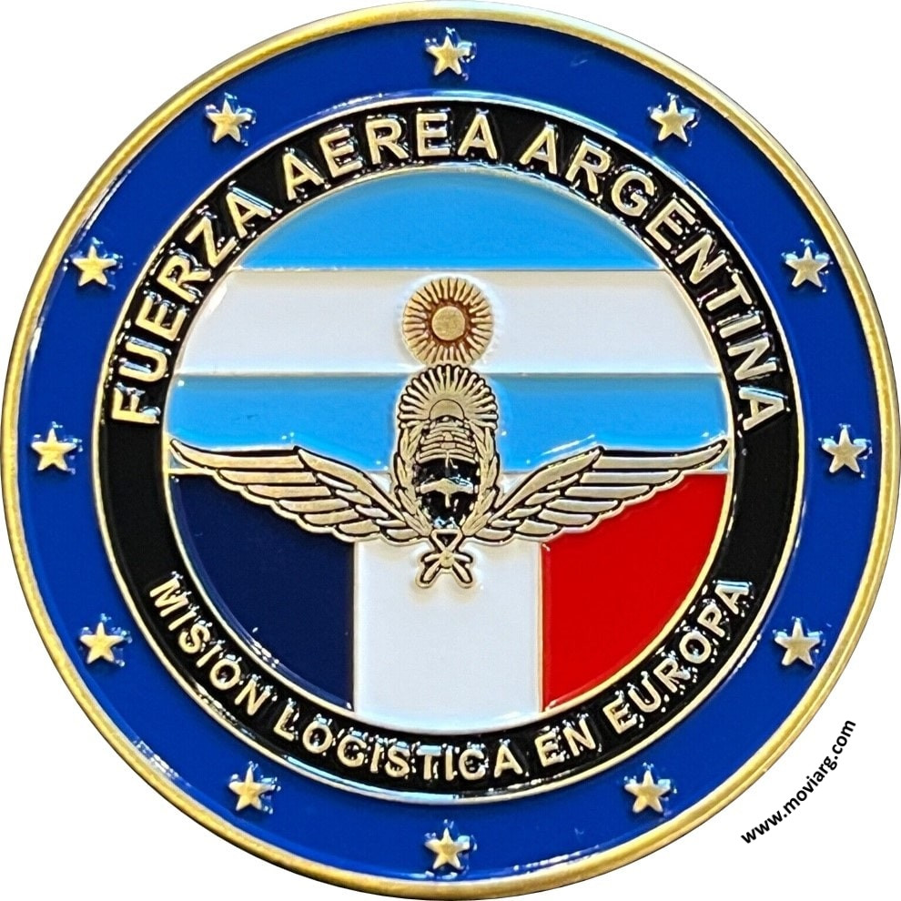 Anverso: FUERZA AEREA ARGENTINA / MISION LOGISTICA EN EUROPA Reverso: DIRECCION GENERAL DE MATERIAL. Campo: SIC ITUR AD ASTRA Referencia: | |