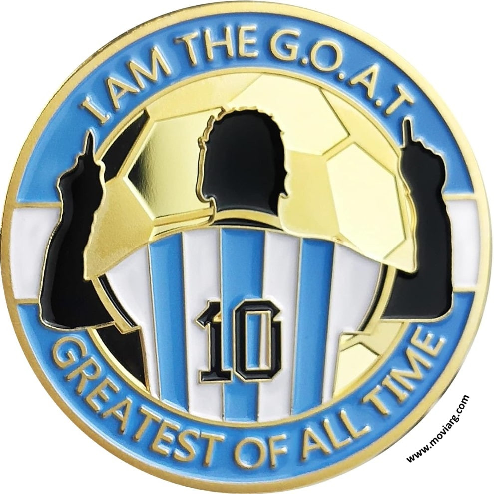 Anverso: ¿QUE MIRÁS / BOBO? / ANDÁ PA' PALLÁ. Campo: 10 Reverso: I AM THE G.O.A.T. / GREATEST OF ALL TIME. Campo: 10 Referencia: | |