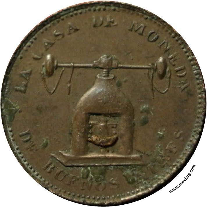 Anverso: LA CASA DE MONEDA / DE BUENOS AIRES Reverso: PRIMER ENSAYO DE LA MAQUINARIA / D. JUAN MIERS / CONSTRUCTOR / 1826 Referencia: BURZIO-5353 ROSA-/55 | |