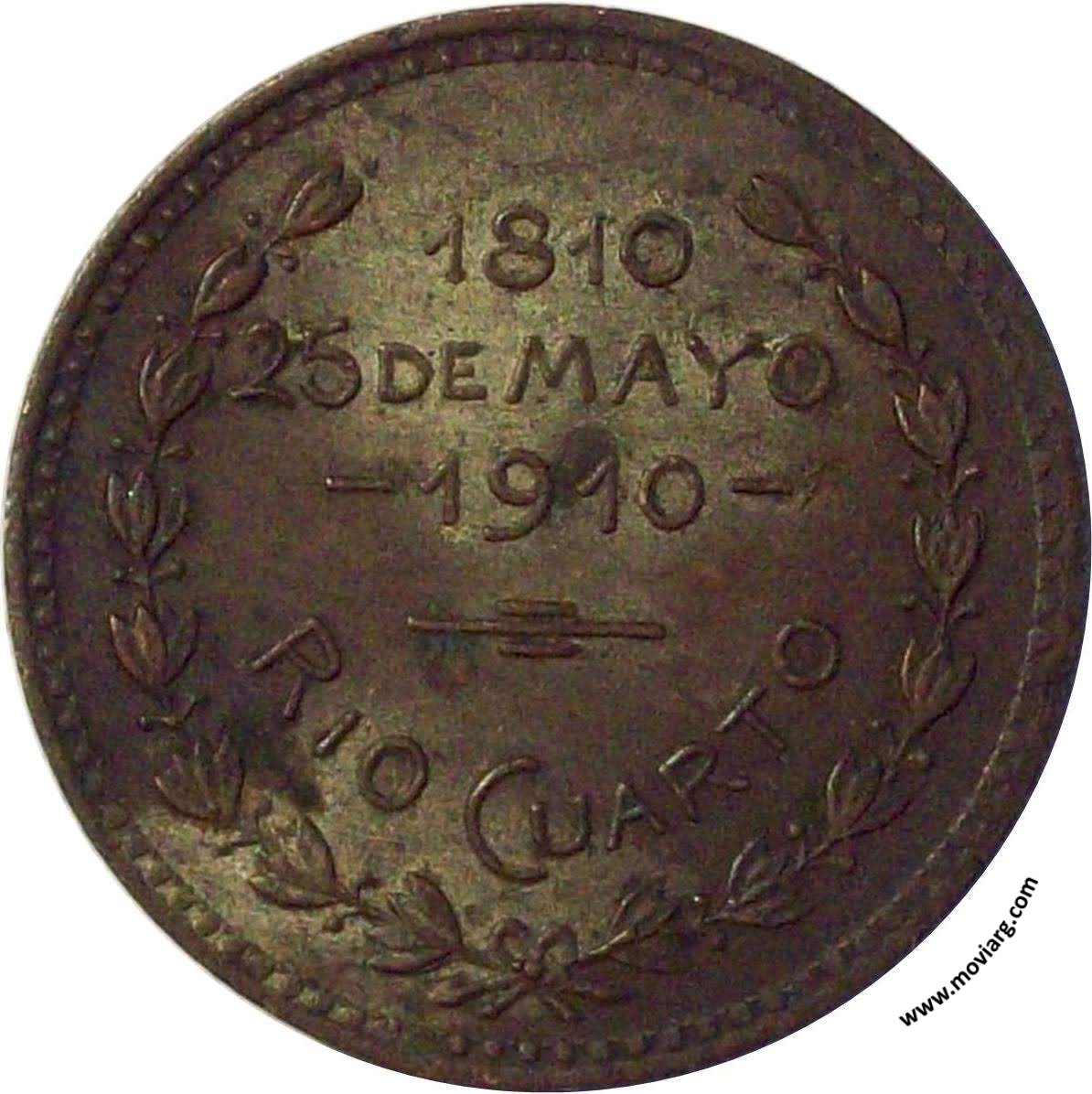 Anverso: OID / MORTALES / EL GRITO / SAGRADO... Reverso: 1810 / 25 DE MAYO / 1910 / RIO CUARTO Referencia: | |