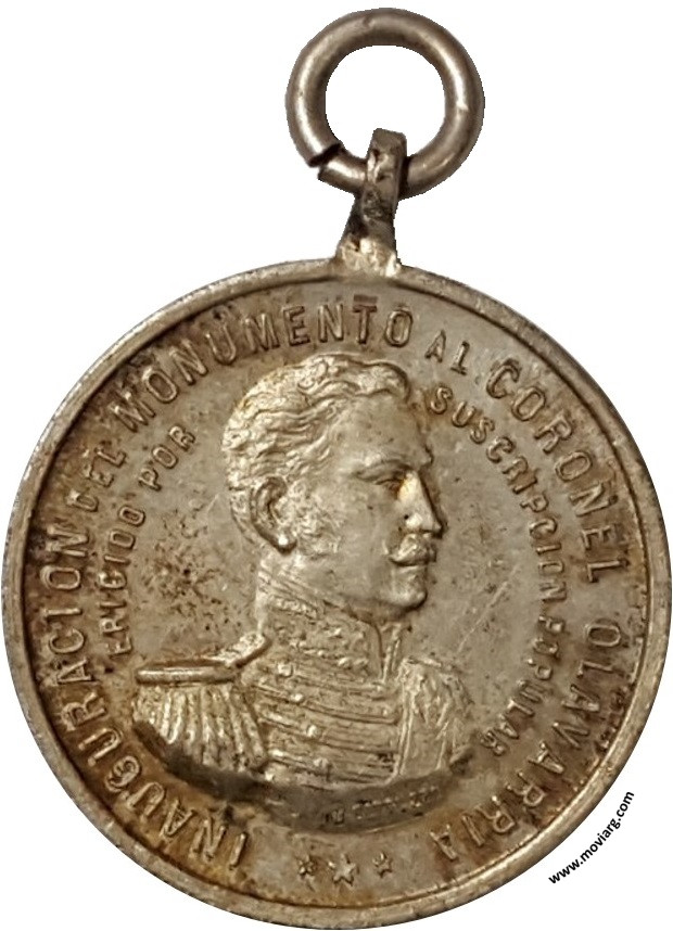 Anverso: INAUGURACION DEL MONUMENTO AL CORONEL OLAVARRIA / ERIGIDO POR / SUSCRIPCION POPULAR. Firma: J. GOTTUZZO Reverso: OLAVARRIA OCTUBRE 12 DE 1901. Campo: SE LEVANTA A LA / FAZ DE LA TIERRA Referencia: | |