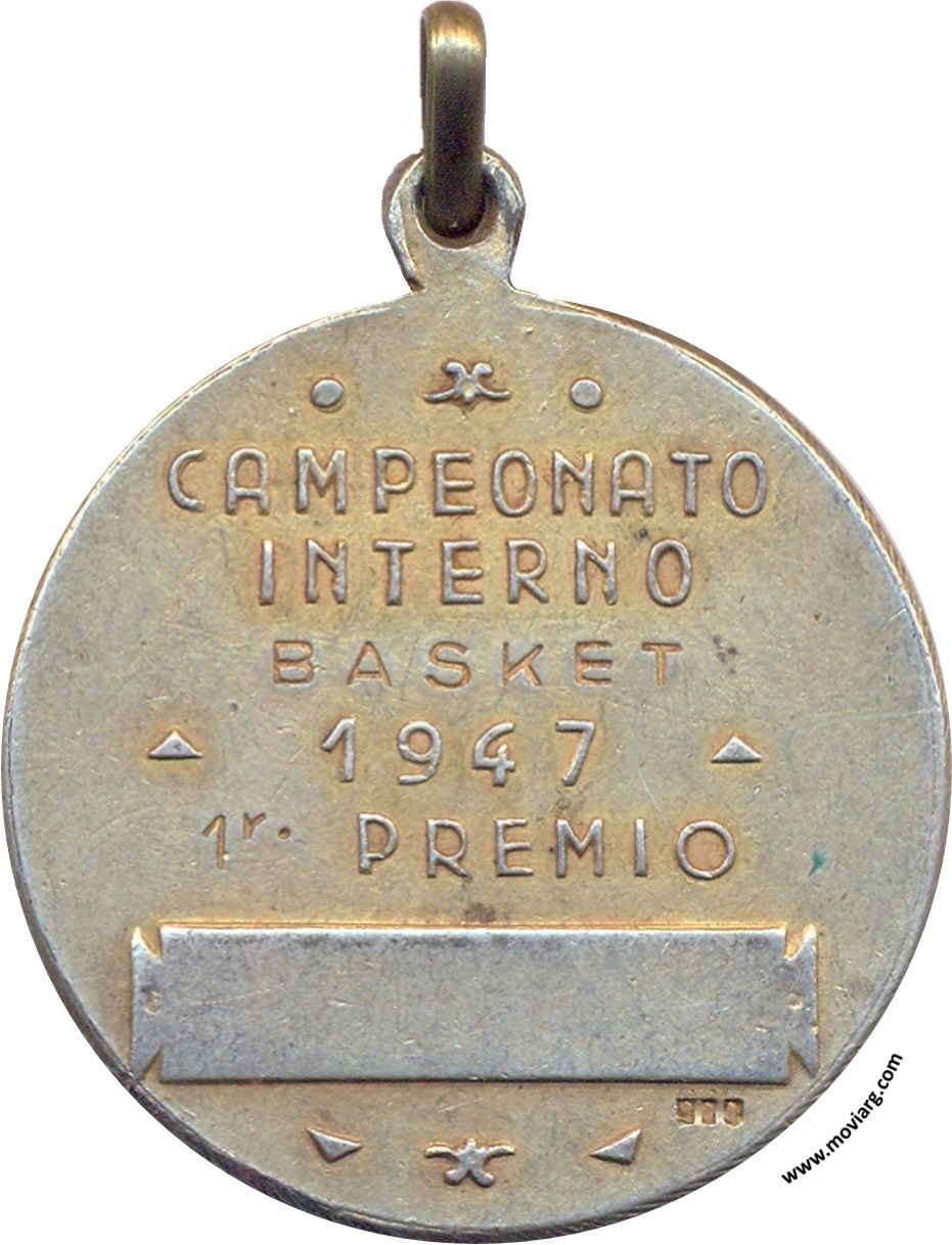 Anverso: CASINO GRAL. DE GUARNICIÓN / BORGHI. Firma: O. GALLO / ARGENTINA Reverso: CAMPEONATO / INTERNO / [ BASKET ] / 1947 / [ 1R. ] PREMIO. Exergo: [ 900 ] Referencia: | |