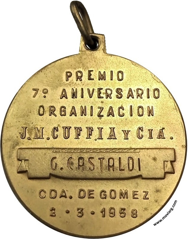 Anverso: Firma: O. GALLO Reverso: PREMIO / 7° ANIVERSARIO / ORGANIZACION / J. M. CUFFIA Y CIA. / [ G. CASTALDI ] / CDA. DE GOMEZ / 2 · 3 · 1958 Referencia: | |