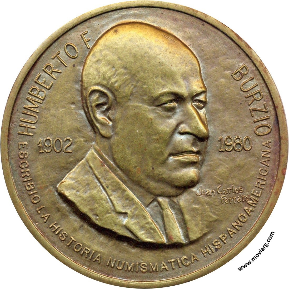 Anverso: HUMBERTO F. / BURZIO / ESCRIBIO LA HISTORIA NUMISMATICA HISPANOAMERICANA / 1902 / 1980. Firma: JUAN CARLOS / FERRARO Reverso: INSTITUTO BONAERENSE DE NUMISMATICA Y ANTIGÜEDADES / FUNDADO EN 1872 / SEGUNDA EPOCA / 1934 Referencia: | |
