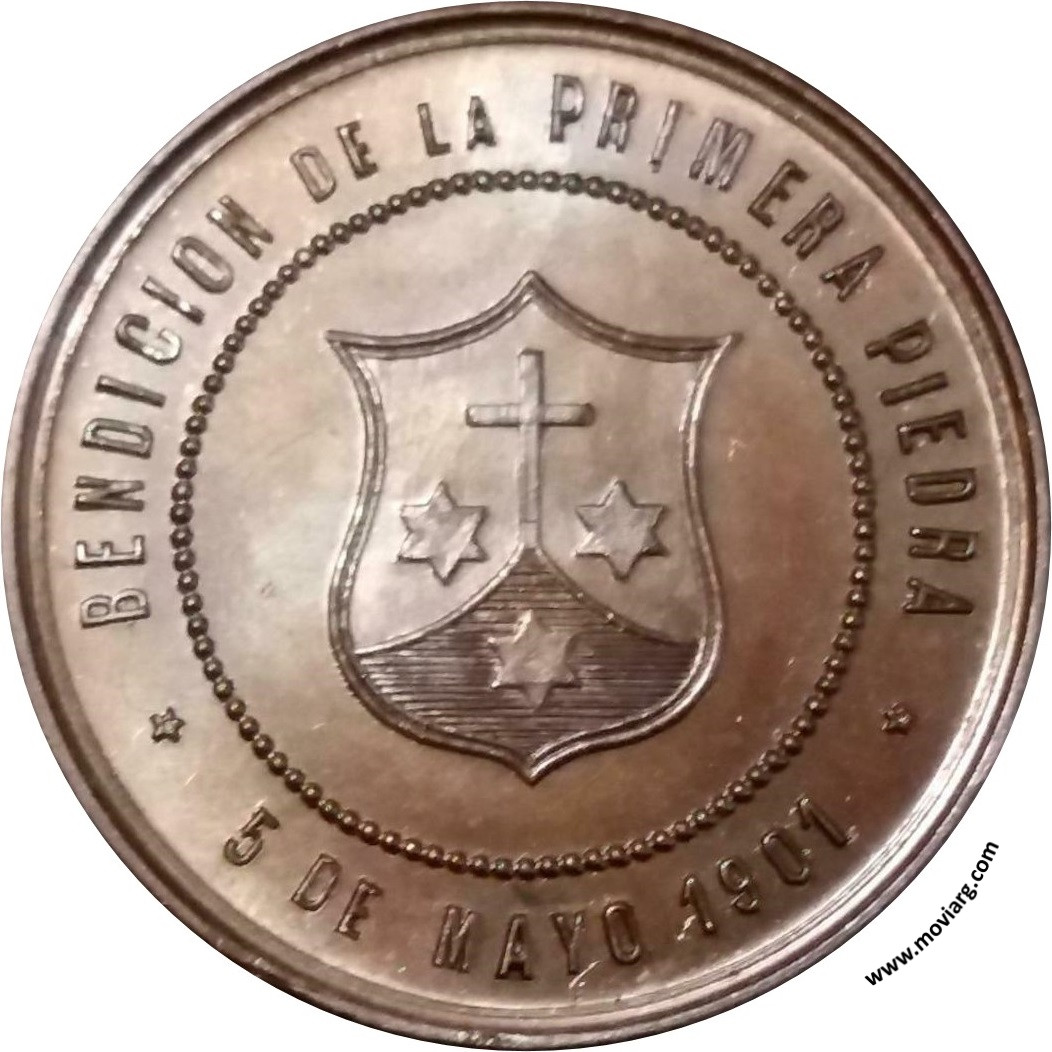Anverso: CAPILLA NUESTRA SEÑORA DEL CARMEN / PUEBLO DIEGO DE ALVEAR Reverso: BENDICION DE LA PRIMERA PIEDRA / 5 DE MAYO 1901 Referencia: | |