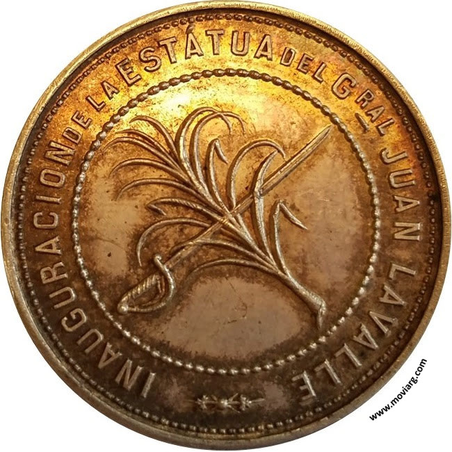 Anverso: INAUGURACION DE LA ESTATUA DEL GRAL JUAN LAVALLE Reverso: LAVALLE / LIBERTADOR / Y / MARTIR / BUENOS AIRES DICIEMBRE 18 DE 1887. Exergo: GRANDE Referencia: BURZIO-487 ROSA-326/116 FERRARI-136 (RG) | |