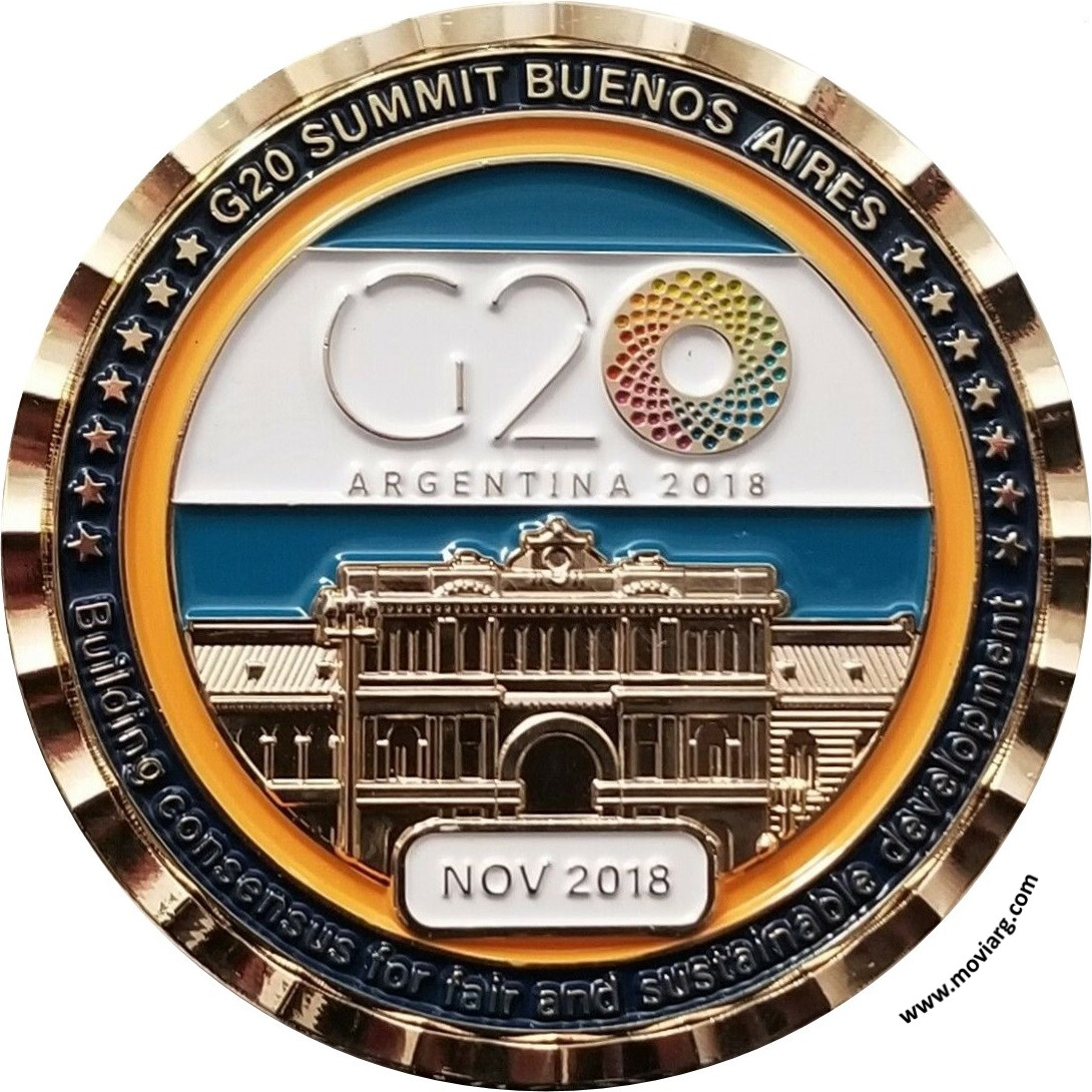Anverso: VISIT OF THE PRESIDENT / DONALD J. TRUMP. Campo: SEAL OF THE PRESIDENT OF THE UNITED STATES Reverso: G20 SUMMIT BUENOS AIRES / BUILDING CONSENSUS FOR FAIR AND SUSTAINABLE DEVELOPMENT / G20 / ARGENTINA 2018 / NOV 2018 Referencia: | |