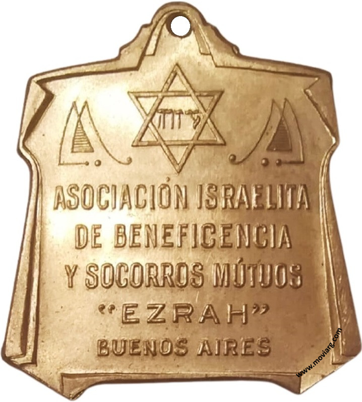 Anverso: HOSPITAL ISRAELITA / 3ER. PABELLÓN / PIEDRA / FUNDAMENTAL / COLOCADA / EL 26 DE SEPTIEMBRE DE 1943. Firma: CONSTANTE ROSSI Reverso: ASOCIACIÓN ISRAELITA / DE BENEFICENCIA / Y SOCORROS MÚTUOS / " EZRAH " / BUENOS AIRES Referencia: | |