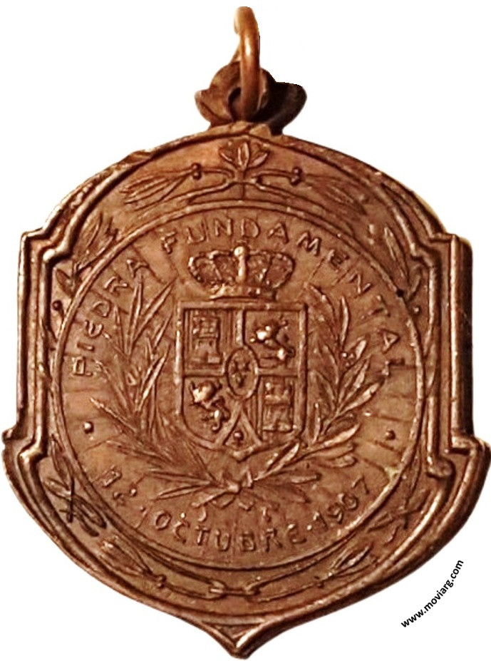 Anverso: HOSPITAL ESPAÑOL / ROSARIO DE STA. FÉ Reverso: PIEDRA FUNDAMENTAL / 12 · OCTUBRE · 1907. Firma: HORTA Y CIA. Referencia: | |