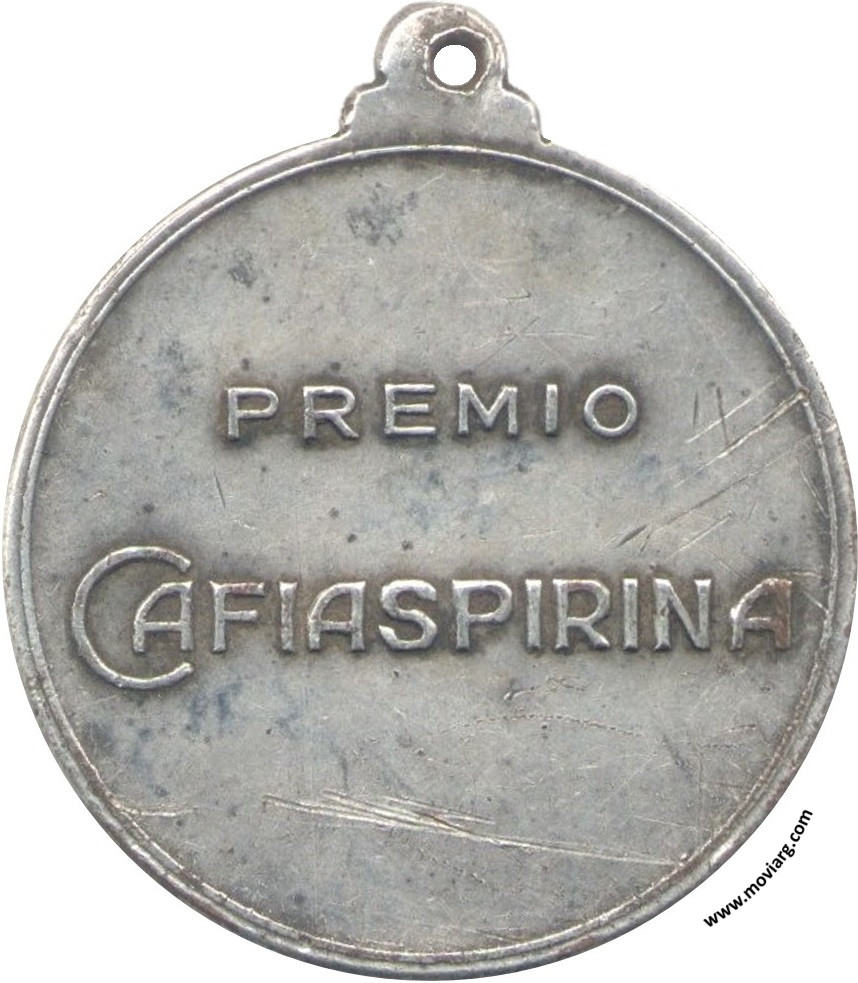 Anverso: Campo: BAYER / BAYER. Firma: O. GALLO Reverso: PREMIO / CAFIASPIRINA Referencia: | |