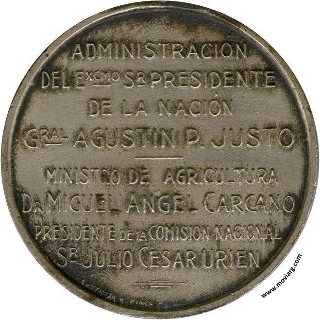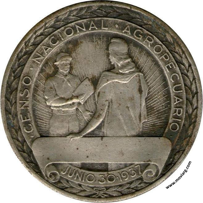 Anverso: CENSO NACIONAL AGROPECUARIO / JUNIO 30 1937 Reverso: ADMINISTRACIÓN / DEL EXCMO. SR. PRESIDENTE / DE LA NACIÓN / GRAL. AGUSTIN P. JUSTO / MINISTRO DE AGRICULTURA / DR. MIGUEL ANGEL CARCANO / PRESIDENTE DE LA COMISION NACIONAL / SR. JULIO CERSA URIEN. Firma: GOTTUZZO Y PIANA Referencia: | |