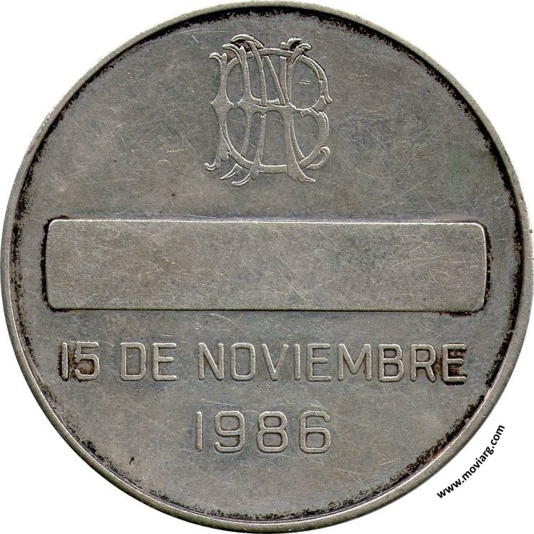 Anverso: CENTENARIO DEL BANCO HIPOTECARIO NACIONAL / 1886 - 1986 Reverso: 15 DE NOVIEMBRE / 1986 Referencia: | |