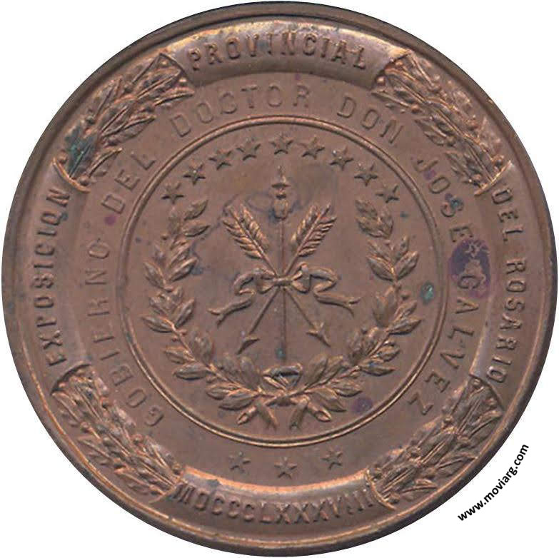 Anverso: EXPOSICION PROVINCIAL DEL ROSARIO / GOBIERNO DEL DOCTOR DON JOSE GALVEZ / MDCCCLXXXVIII Reverso: TRABAJEMOS PRODUZCAMOS EXPORTEMOS / EL TRABAJO DIGNIFICA A LOS PUEBLOS / GRAN PREMIO / CLUB / INDUSTRIAL Referencia: | |