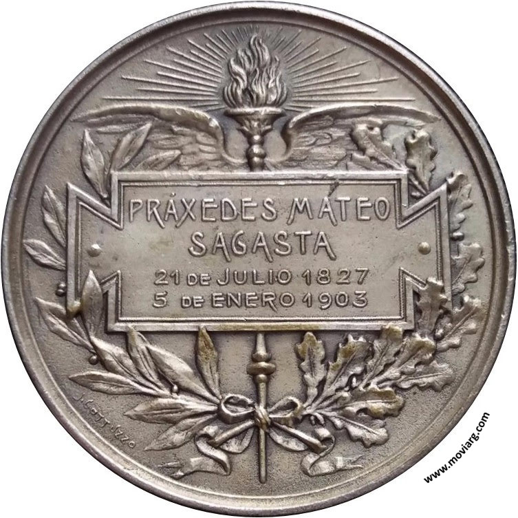 Anverso: Reverso: PRÁXEDES MATEO / SAGASTA / 21 DE JULIO 1827 / 5 DE ENERO 1903. Firma: J. GOTTUZZO Referencia: | |