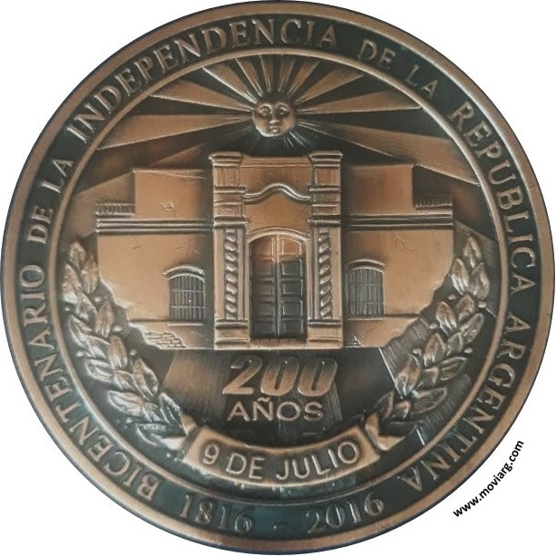 Colección HV Anverso: BICENTENARIO DE LA INDEPENDENCIA DE LA REPUBLICA ARGENTINA / 200 / AÑOS / 9 DE JULIO / 1816 - 2016Reverso: SAN ELOY / 2016 / CENTRO FILATELICO Y NUMISMATICO / SAN FRANCISCO. Exergo: FENYMA Referencia: | |