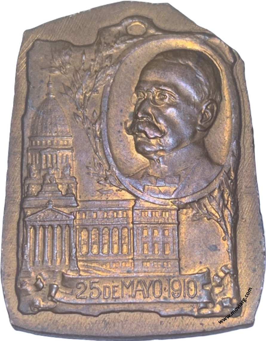 Colección Magnin Anverso: 25 DE MAYO 1810. Descripción: Vista parcial del ala norte del Cabildo de Buenos Aires. Entre ramas con hojas in círculo en el márgen derecho con el busto del Presidente de la Primera Junta de las Provincias Unidas del Río de la PlataReverso: 25 DE MAYO 1910. Descripción: Vista parcial del ala norte del Congreso de la Nación Argentina. Entre ramas con hojas in círculo en el márgen derecho con el busto del Presidente de la República Argentina José Figueroa Alcorta Referencia: | |
