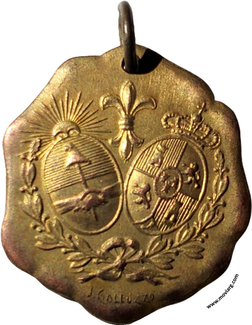 | Año: 1905 Romerías Metal: Dorado - Peso: 8.14gr - Módulo: 26.69x29.75mm - Espesor: 1.62mm - Rotación: 12hrs Grabador: Juan Gottuzzo | |