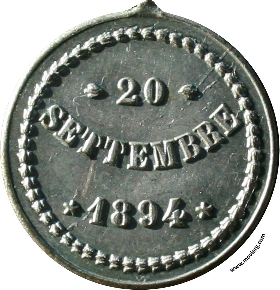 Colección Emilio y Nina Perucchetti Anverso: " BELLA ITALIA " / SOCIETÁ / DI M. S. / ED ESTRUZIONE / FONDATA / IL 1° DICEMBRE 1894Reverso: 20 / SETTEMBRE / 1894 Referencia: | |