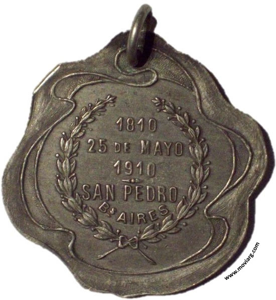 Anverso: Reverso: 1810 / 25 DE MAYO / 1910 / SAN PEDRO / BS. AIRES Referencia: | |