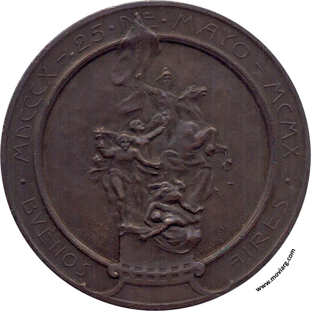 Anverso: MDCCCX - 25 DE MAYO - MCMX / BUENOS / AIRES. Firma: AUTORES / G. MORETTI / L. B. PIZZOHARA (???) / PASTRORINO Y SALA Reverso: EN EL CENTENARIO DE LA / REVOLUCIÓN DE MAYO DE MDCCCX / EL PRESIDENTE DE LA REPÚBLICA ARGENTINA / DR. JOSÉ FIGUEROA ALCORTA / COLOCA LA PIEDRA FUNDAMENTAL / DEL MONUMENTO QUE LA CONMEMORA. Firma: ESC. / L. SALA Referencia: | |