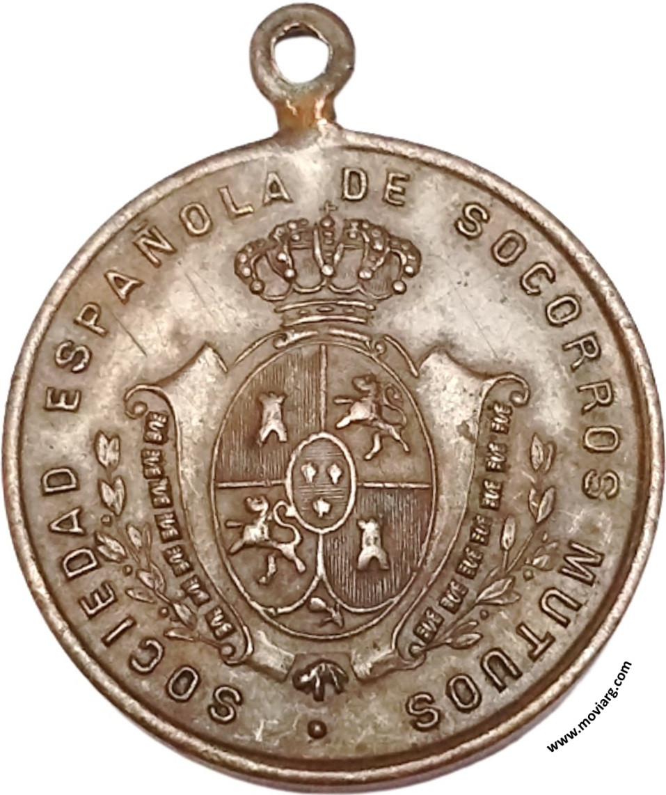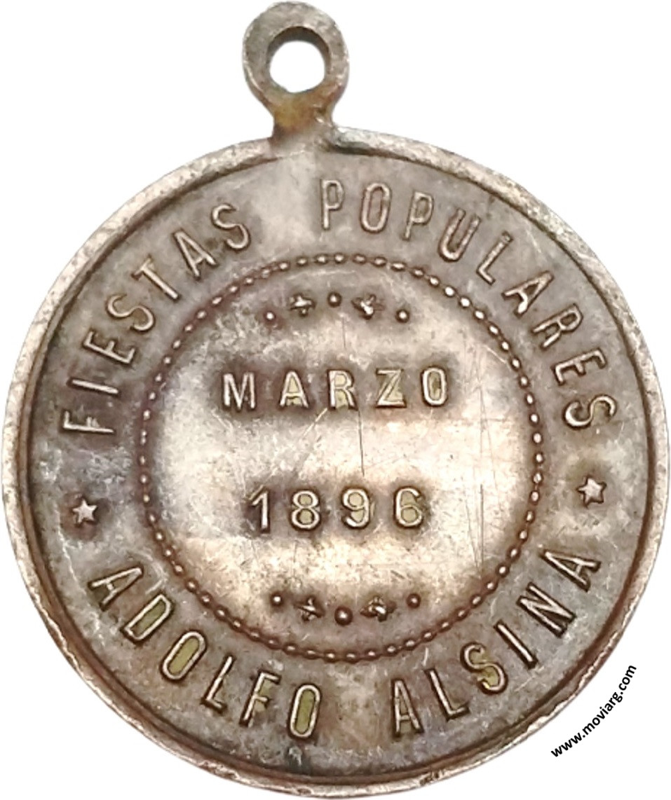 Anverso: SOCIEDAD ESPAÑOLA DE SOCORROS MUTUOS Reverso: FIESTAS POPULARES / ADOLFO ALSINA / MARZO / 1896 Referencia: | |