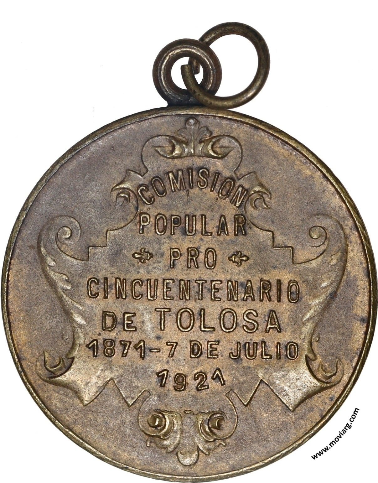 Colección AGB Anverso: MARTIN J. YRAOLA / FUNDADOR. Firma: CONSTANTE ROSSIReverso: COMISION / POPULAR / PRO / CINCUENTENARIO / DE TOLOSA / 1871 - 7 DE JULIO / 1921 Referencia: | |