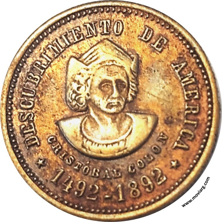 Anverso: REPUBLICA ARGENTINA Reverso: DESCUBRIMIENTO DE AMERICA / CRISTÓBAL COLON / 1492 - 1892 Canto: Estriado Recto Referencia: | |