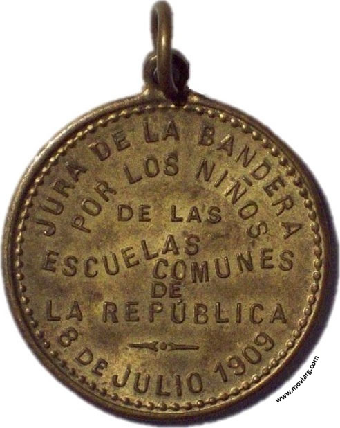 Anverso: Reverso: JURA DE LA BANDERA / POR LOS NIÑOS / DE LAS / ESCUELAS / COMUNES / DE / LA REPÚBLICA / 8 DE JULIO DE 1909 Referencia: | |