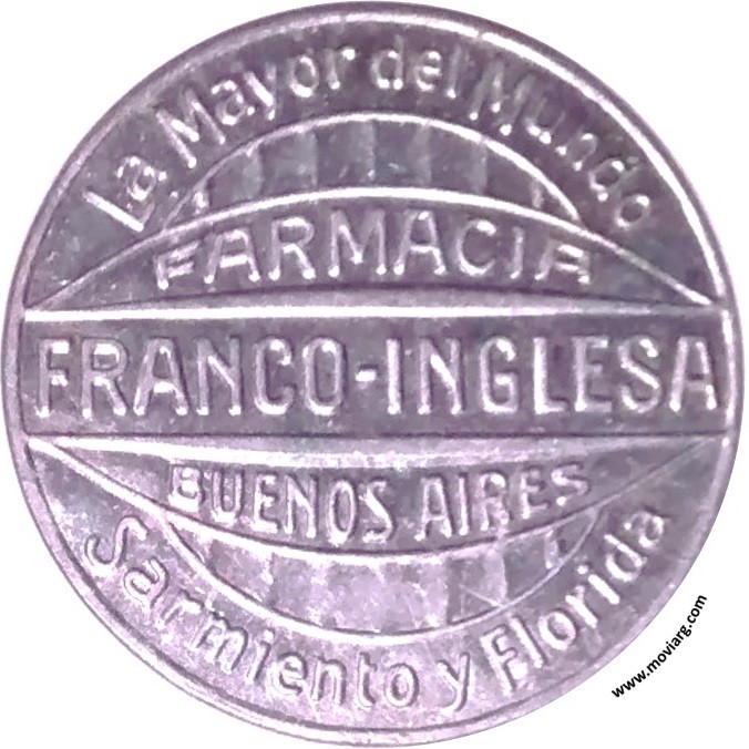Anverso: LA MAYOR DEL MUNDO / FARMACIA / FRANCO-INGLESA / BUENOS AIRES / SARMIENTO Y FLORIDA Reverso: (Sello postal - 5 Centavos) Referencia: | |