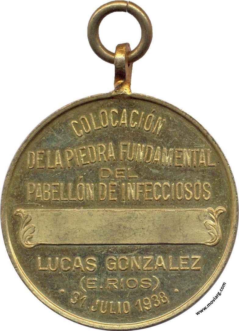 Anverso: Firma: CONSTANTE ROSSI Reverso: COLOCACIÓN / DE LA PIEDRA FUNDAMENTAL / DEL / PABELLÓN DE INFECCIOSOS / LUCAS GONZALEZ / ( E. RIOS ) / 31 JULIO 1938 Referencia: | |