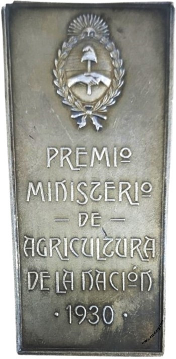 Anverso: Reverso: PREMIO / MINISTERIO / DE / AGRICULTURA / DE LA NACIÓN / 1930 Referencia: | |