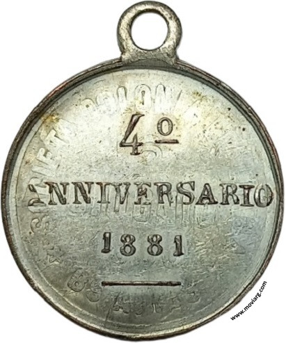 Anverso: SOCIETÁ COLONIA ITALIANA / BUENOS - AIRES Reverso: 4° / ANNIVERSARIO / 1881 Referencia: | |