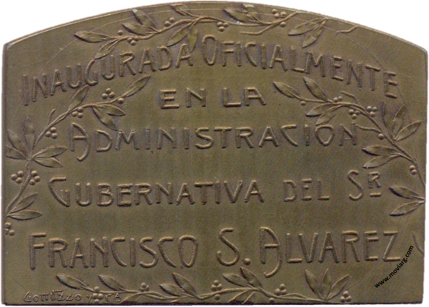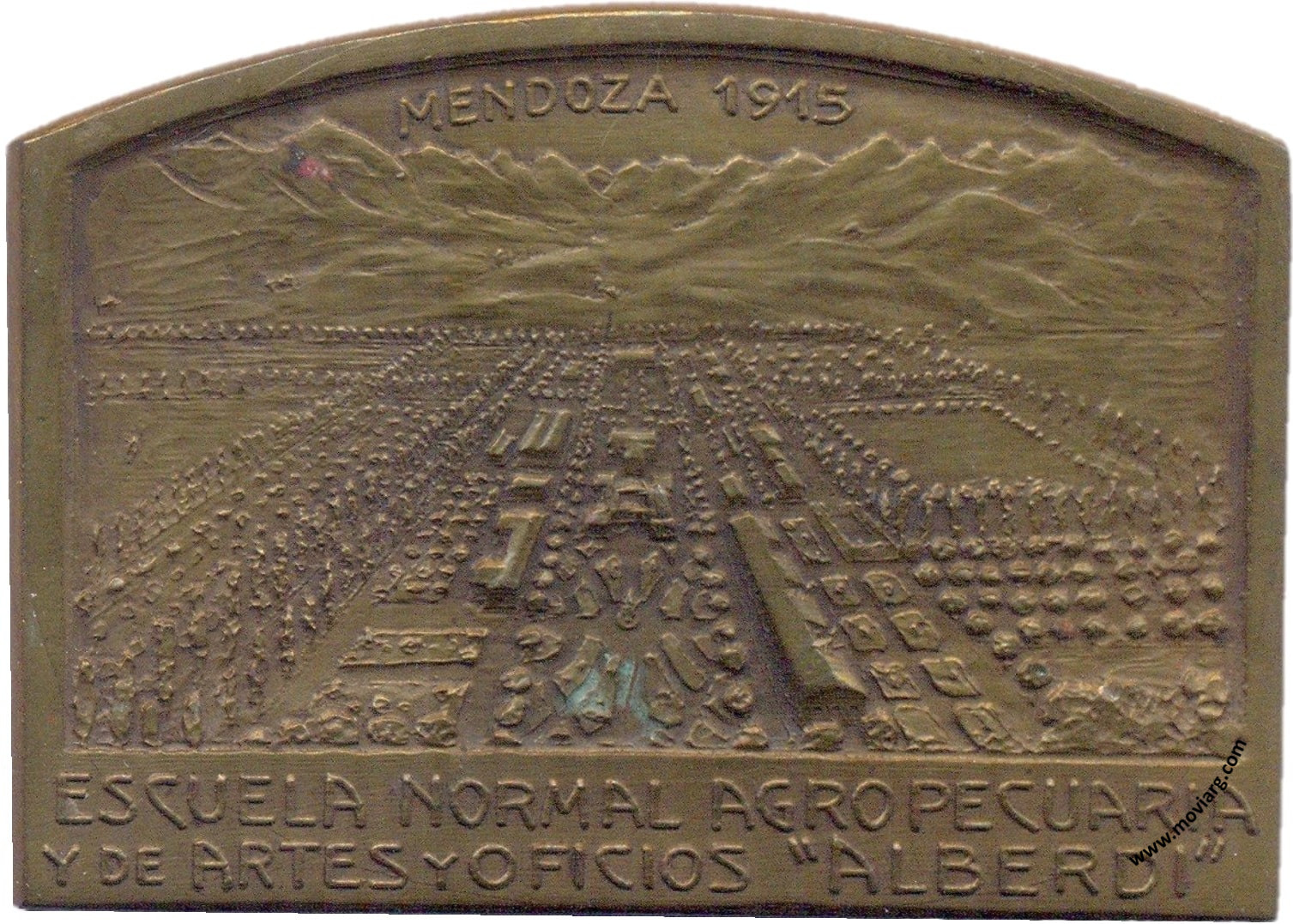 Anverso: MENDOZA 1915 / ESCUELA NORMAL AGROPECUARIA / Y DE ARTES Y OFICIOS " ALBERDI " Reverso: INAUGURADA OFICIALMENTE / EN LA / ADMINISTRACION / GUBERNATIVA DEL SR. / FRANCISCO S. ALVAREZ. Firma: GOTTUZZO Y CA. Referencia: | |