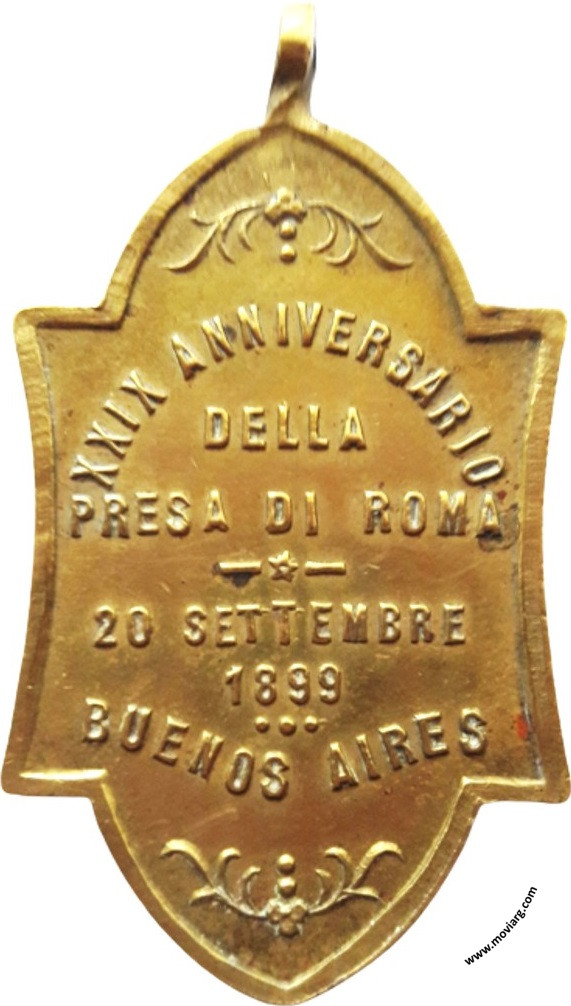 Anverso: Campo: S.P.Q.R. Reverso: XXIX ANNIVERSARIO / DELLA / PRESA DI ROMA / 20 SETTEMBRE / 1899 / BUENOS AIRES Referencia: | |