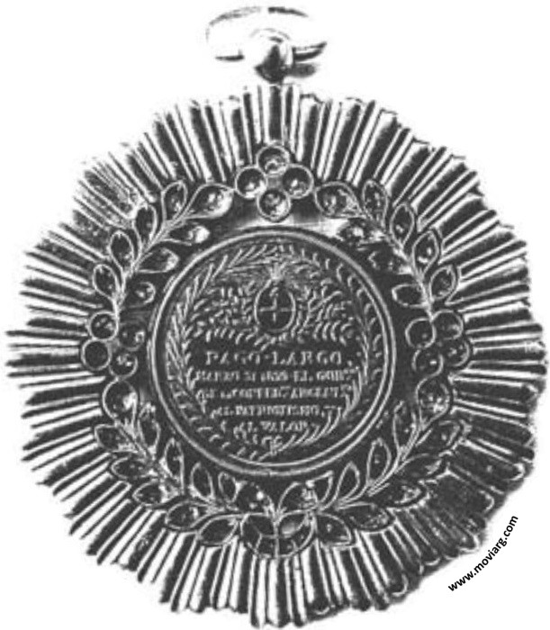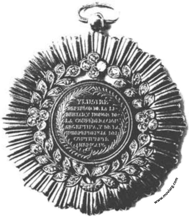 Descendencia Echagüe Anverso: PAGO LARGO / MARZO 31 DE 1839. EL GOBNO. / DE LA CONFEDON. ARGENTNA. / AL PATRIOTISMO Y / AL VALORReverso: YLUSTRE / DEFENSOR DE LA LI- / BERTAD Y HONOR DE / LA CONFEDERACION / ARGENTINA Y DE LA / INDEPENDENCIA DEL / CONTINENTE / AMERICANO Referencia: | |