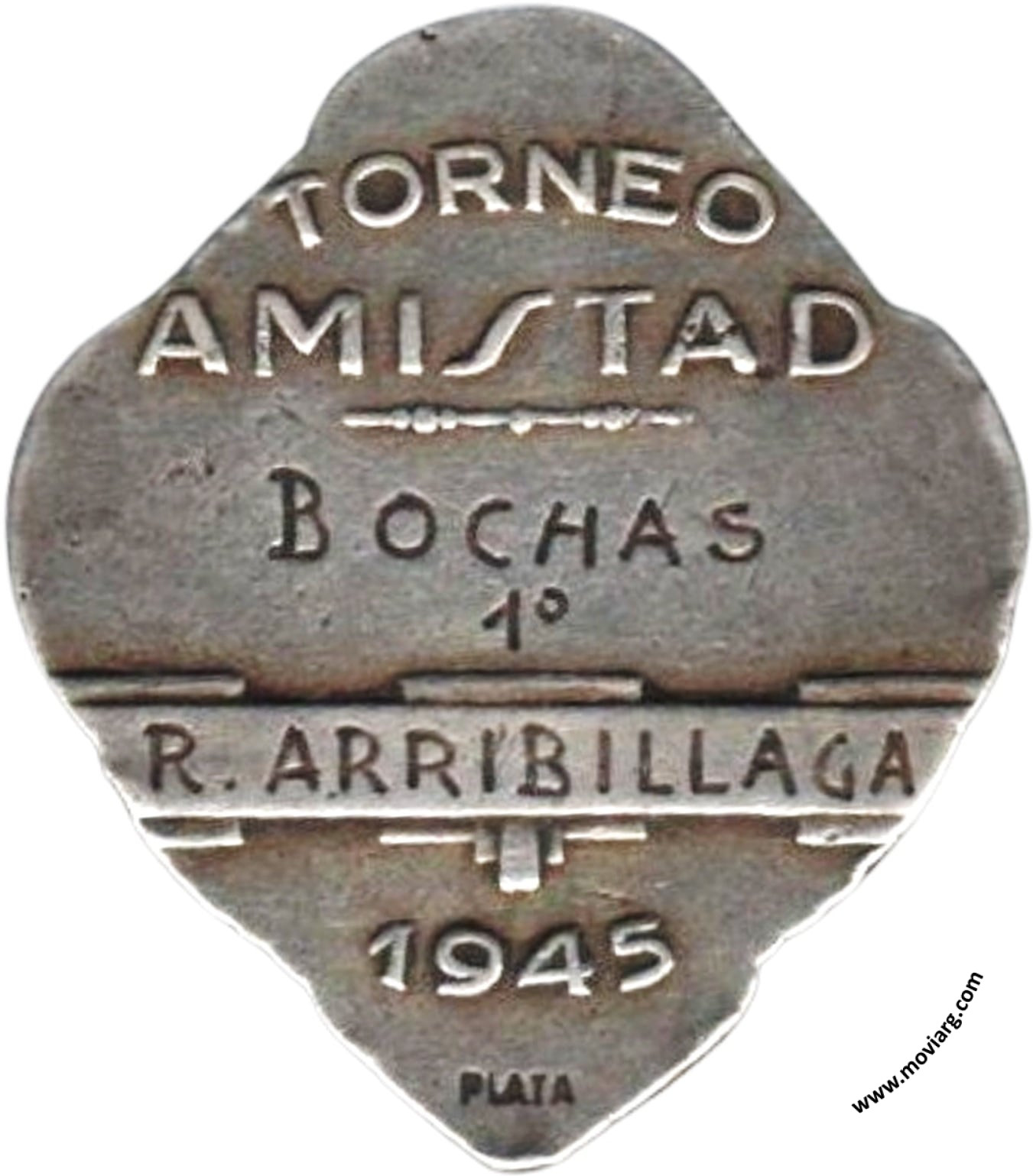 Anverso: Campo: ESSO / C.S.D. / U.T. (Club Social y Deportivo Unión Telefónica) / Reverso: TORNEO / AMISTAD / [ BOCHAS ] / [ 1° ] / [ R. ARRIBILLAGA ] / 1945. Exergo: [ PLATA ] Referencia: | |