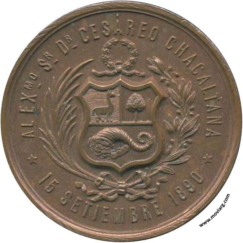 Anverso: AL EMO. SR. DR. CESÁREO CHACALTANA / 15 SETIEMBRE 1890 Reverso: LOS PERUANOS / RESIDENTES EN / BUENOS AIRES / A / SU MINISTRO / Y AMIGO Referencia: | |