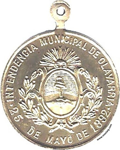 historiasolavarria blogspot com Anverso: INTENDENCIA MUNICIPAL DE OLAVARRIA / 25 DE MAYO DE 1892Reverso: INAUGURACION DE LOS EDIFICIOS PUBLICOS / ADMINISTRACION / Y / PROGRESO Referencia: | |