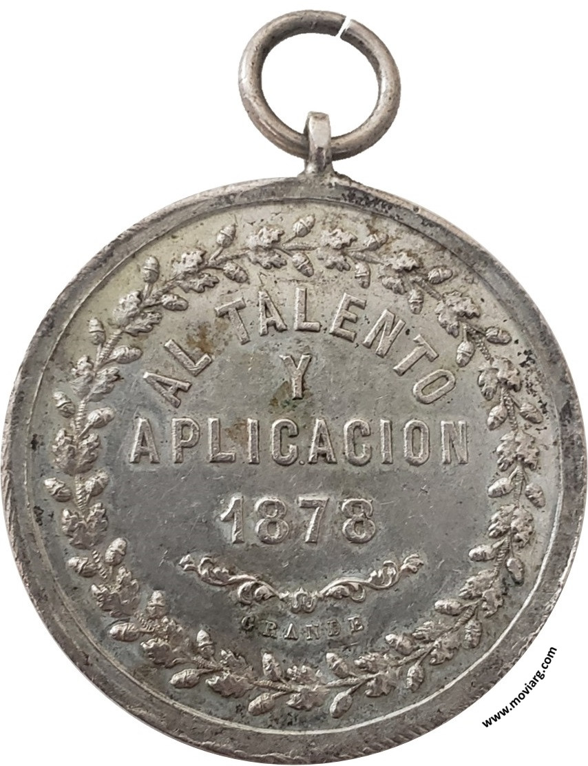 Anverso: EL GOBIERNO DE ENTRE - RIOS Reverso: AL TALENTO / Y / APLICACION / 1878 (1877/8). Firma: GRANDE Referencia: | |
