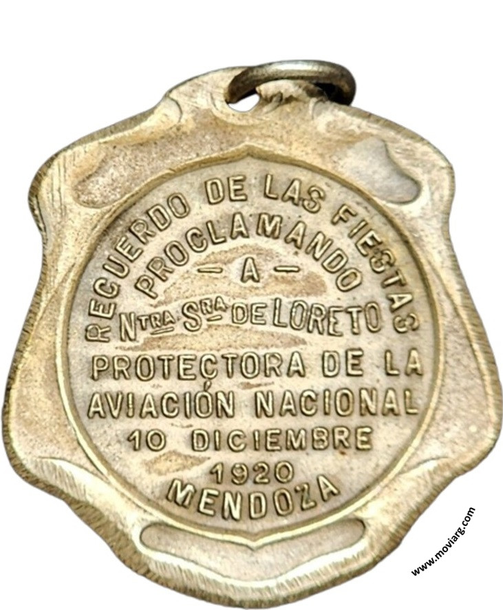 Anverso: Firma: CONST. ROSSI Reverso: RECUERDO DE LAS FIESTAS / PROCLAMANDO / A / NTRA. SRA. DE LORETO / PROTECTORA DE LA / AVIACIÓN NACIONAL / 10 DICIEMBRE / 1920 / MENDOZA Referencia: | |