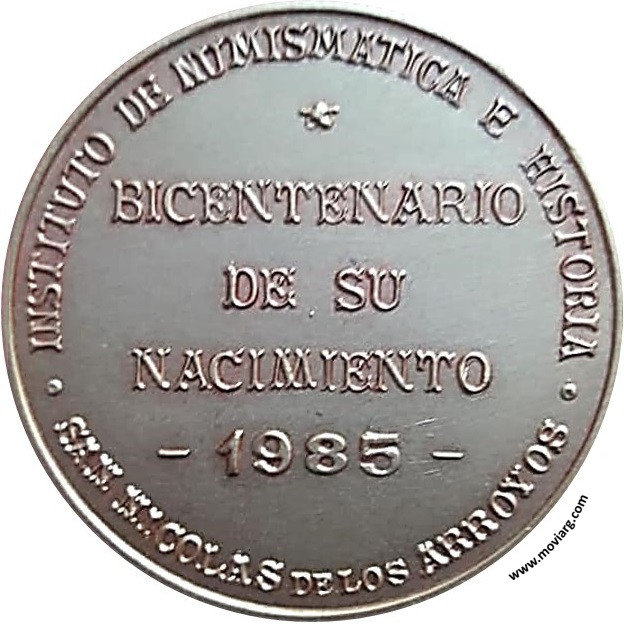 Anverso: MARTIN MIGUEL DE GUEMES / 1785 - 1821. Firma: (???) Reverso: INSTITUTO DE NUMISMATICA E HISTORIA / SAN NICOLAS DE LOS ARROYOS / BICENTENARIO / DE SU / NACIMIENTO / 1985 Referencia: | |